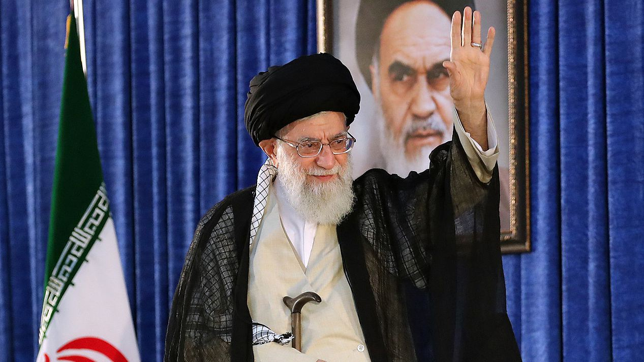 A handout picture provided by the office of Iran's supreme leader Ayatollah Ali Khamenei on June 4, 2018, shows him greeting the crowd during a ceremony on the occasion of the 29th anniversary of the death of the founder of the Islamic Republic, Ayatollah Ruhollah Khomeini at his mausoleum in a suburb of Tehran. /VCG Photo
