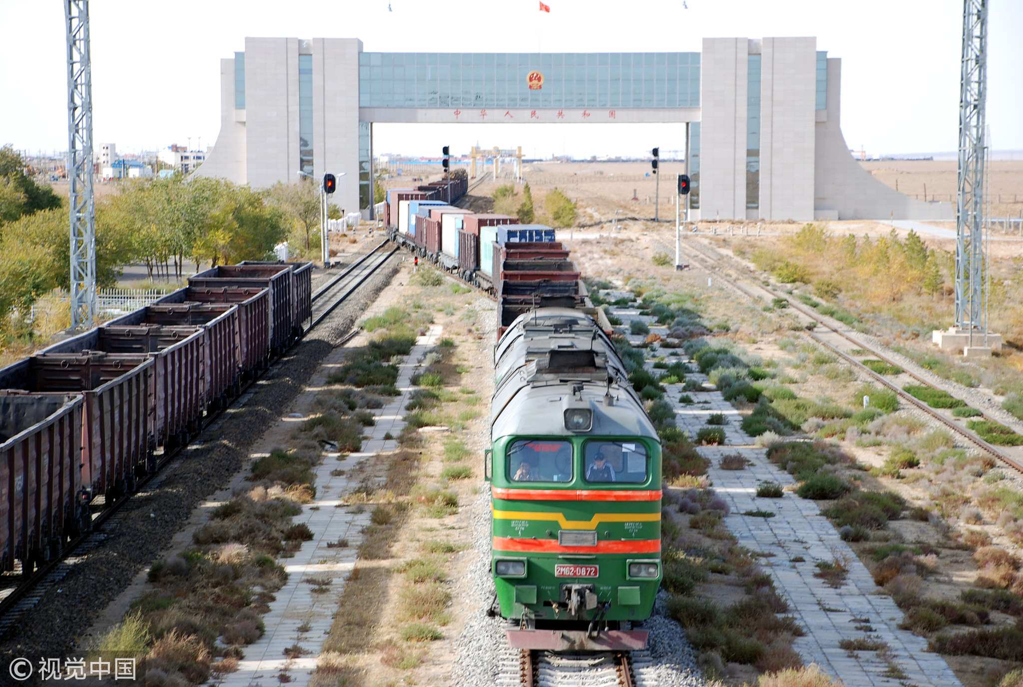 A train carrying goods crossing China's Erenhot port /VCG Photo