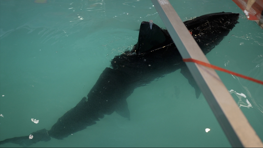 The shell of the bionic shark is made from sound-absorbing material, which makes the robot easier to disguise.