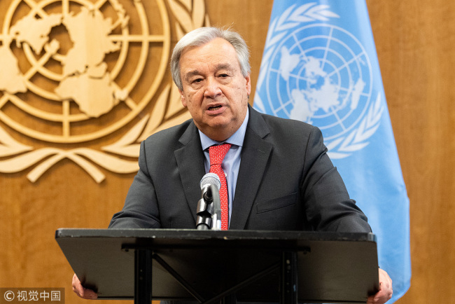 UN Secretary-General Antonio Guterres speaks at the United Nations in New York City, New York, September 23, 2018. /VCG Photo