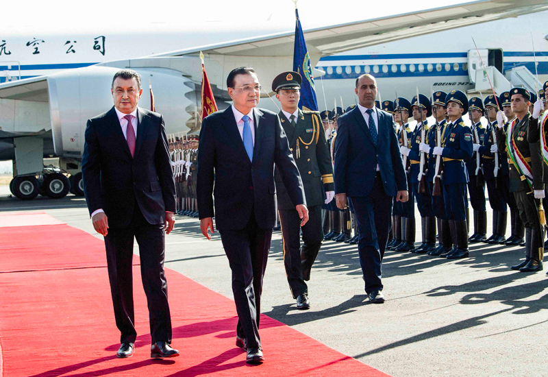 The trip marks Li's first visit to Tajikistan. Tajik Prime Minister Kohir Rasulzoda led a group of senior government officials to meet Li at the Dushanbe international airport, where a grand welcoming ceremony was held. Local youth in national costumes presented flowers to the Chinese premier and his wife. Then Li, accompanied by Rasulzoda, reviewed the honor guard.