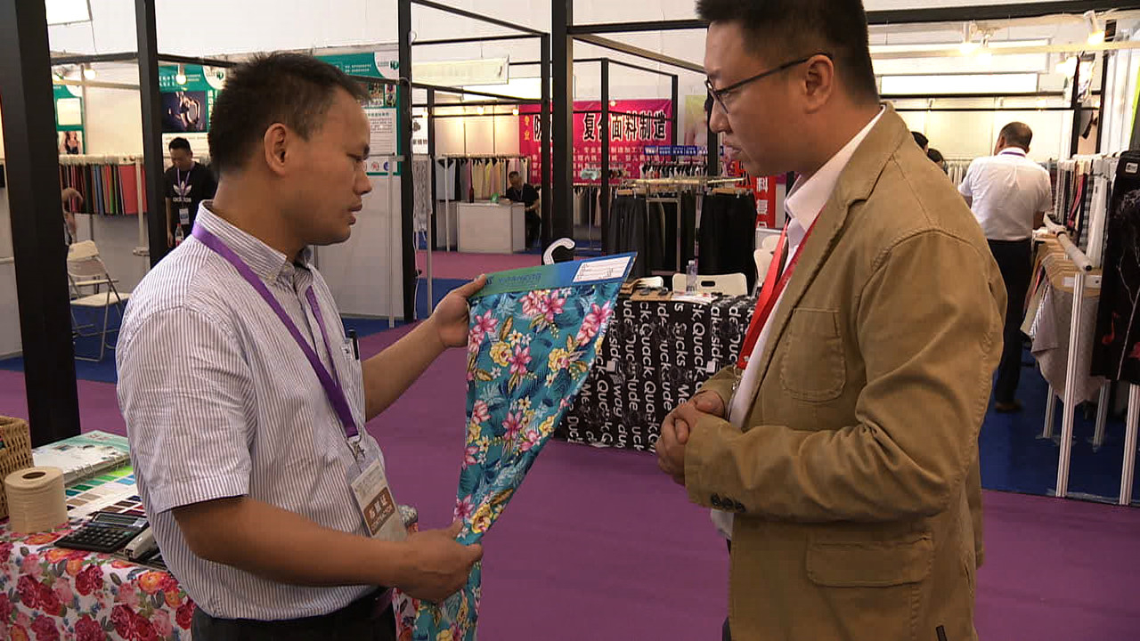 At the Dalian International Garment and Textile Fair, manufacturers like Liang Zhouye's company – specializing in swimsuit fabric – are looking to avoid extra taxes on their US exports.