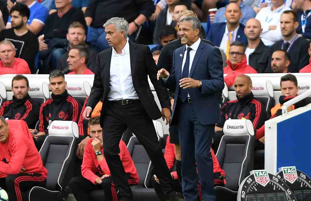 Jose Mourinho (L) admitted Manchester United had paid the price for "incredible mistakes" in their dismal 3-2 defeat at Brighton. /VCG Photo