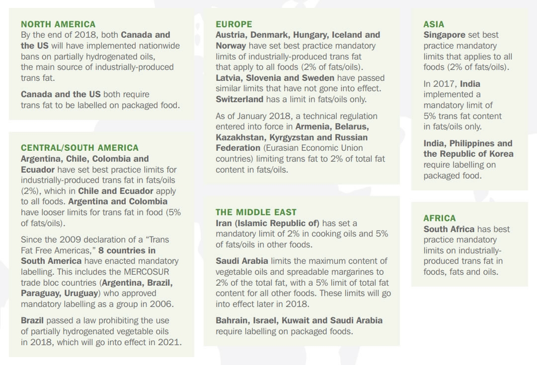- Promote the replacement of industrially-produced trans fats with healthier fats and oils.