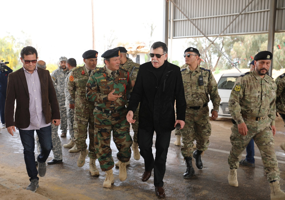 Libyan Prime Minister Fayez al-Sarraj arrives at the checkpoint Gate 27, after retaking it from Haftar forces, in west of Tripoli, Libya, April 05, 2019. /Reuters Photo