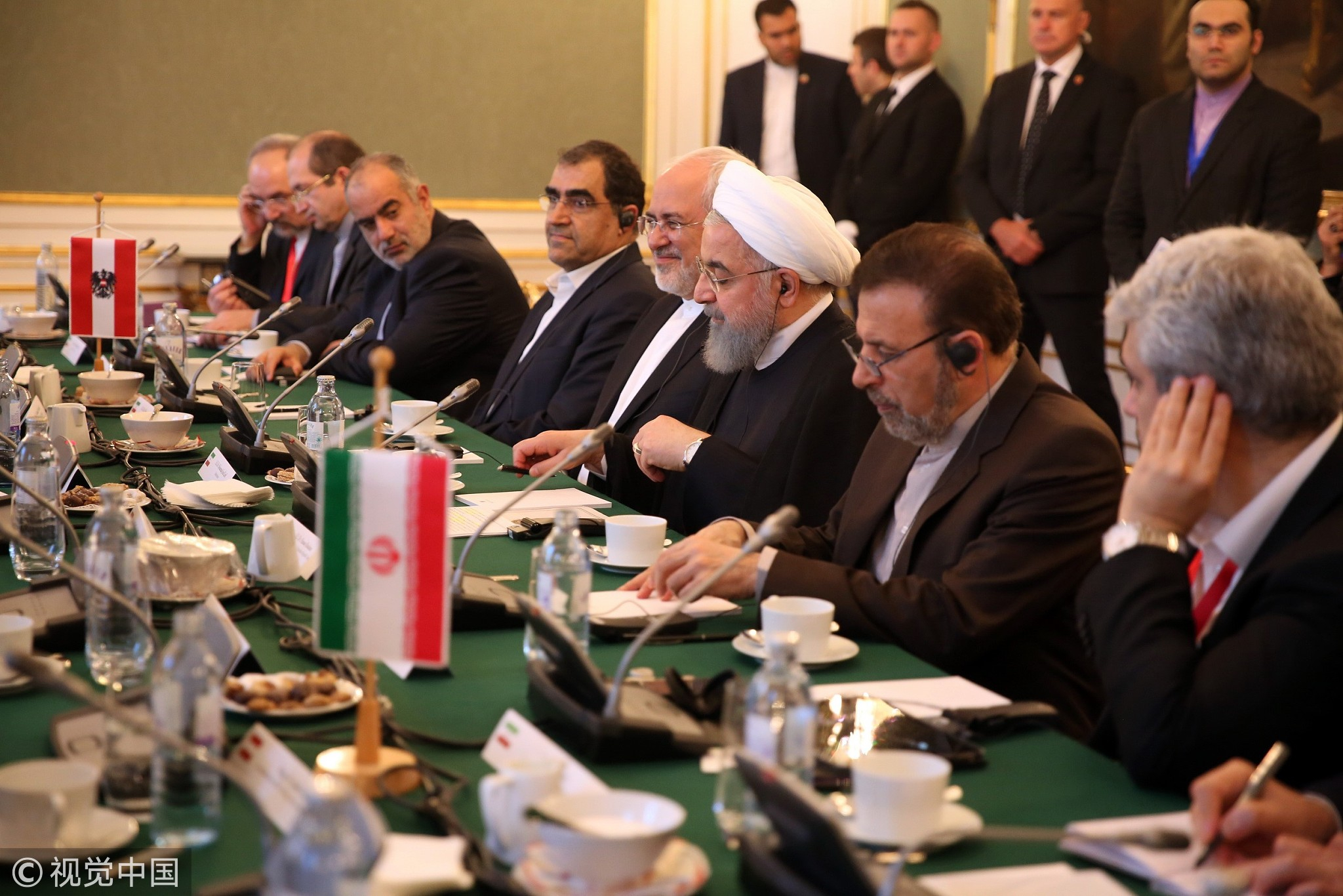 President Hassan Rouhani (3rd R) and Austrian President Alexander Van der Bellen (not seen) hold a committee lateral meeting at the Hofburg Palace in Vienna, Austria during an official visit on July 4, 2018. (Photo by Iranian Presidency / Handout/Anadolu Agency/Getty Image/ VCG Photo