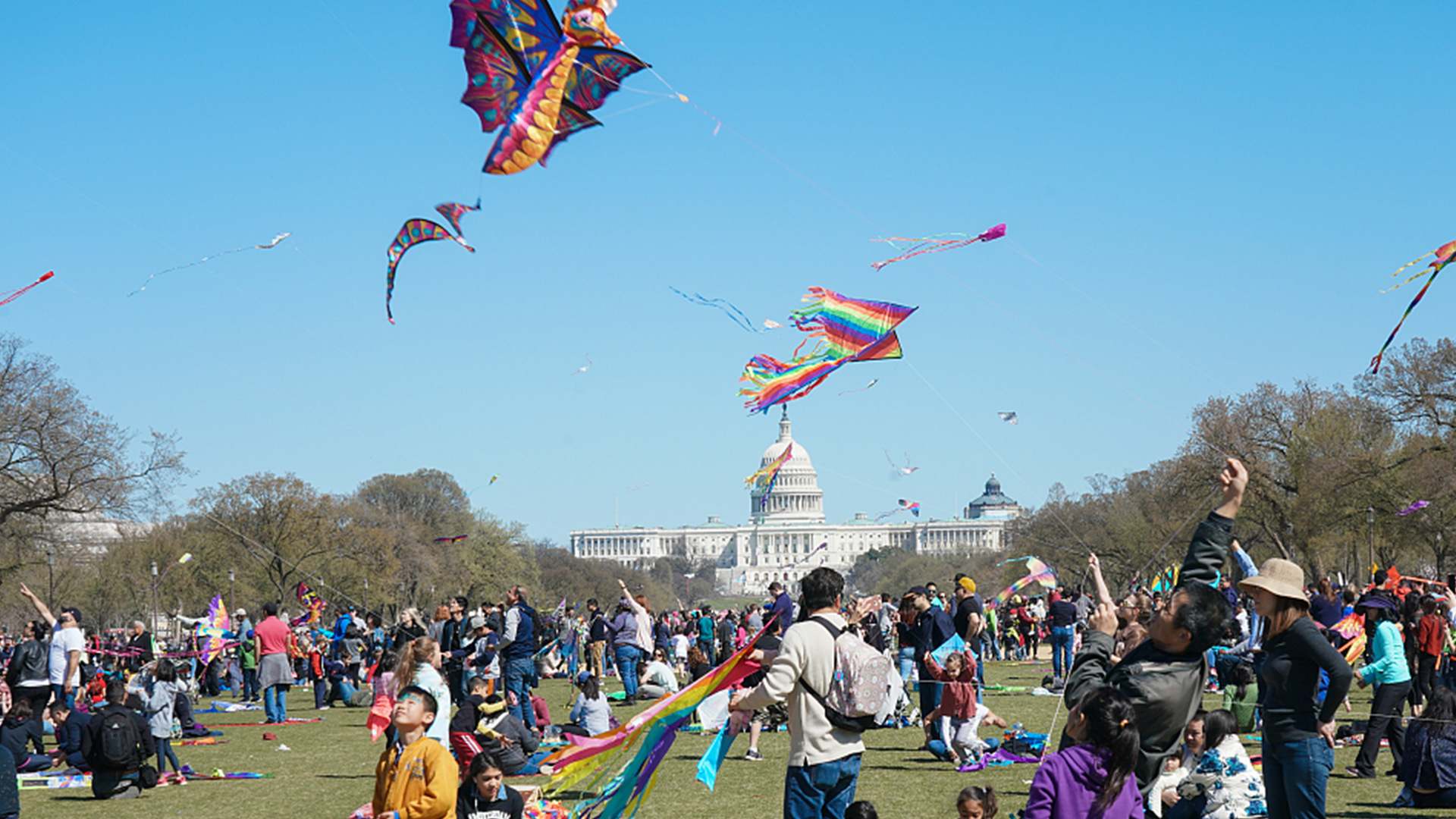 Playful kites and laughter filled the grounds of the Washington Monument on Saturday as families came out to celebrate Washington, DC's annual kite festival, part of the city's famed National Cherry Blossom Festival.