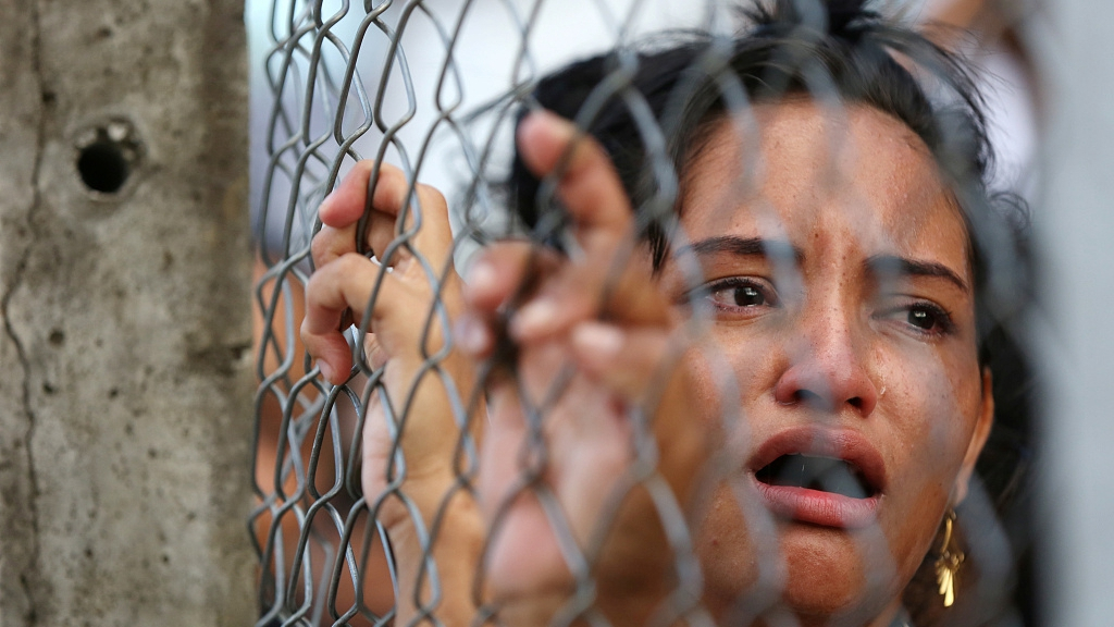 Relatives of inmates cry in front of a prison complex in the Brazilian state of Amazonas in Manaus, Brazil, May 27, 2019. /VCG Photo