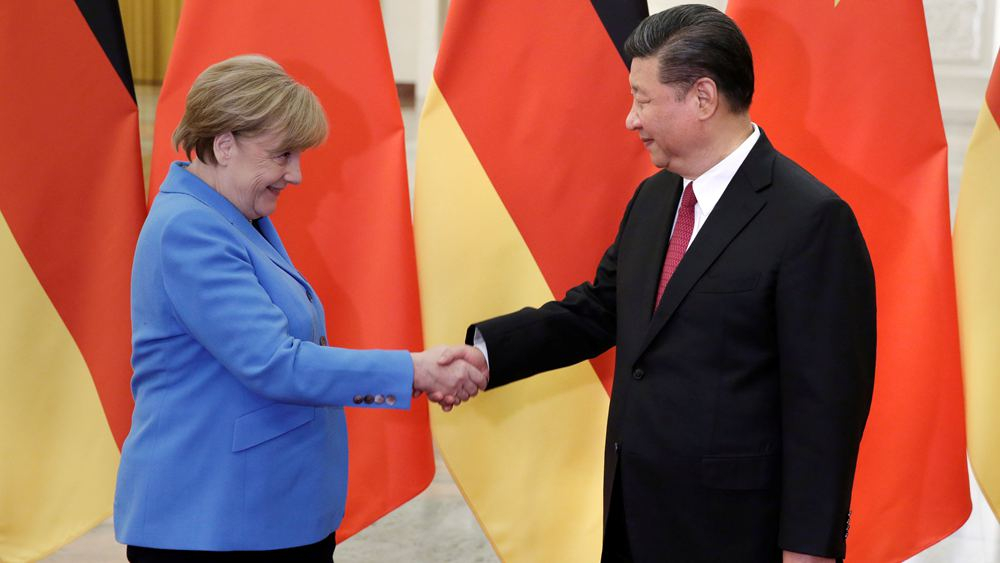 Chinese President Xi Jinping (R) and German Chancellor Angela Merkel shake hands at the Great Hall of the People in Beijing, May 24, 2018. /Reuters Photo