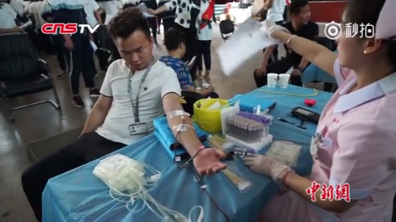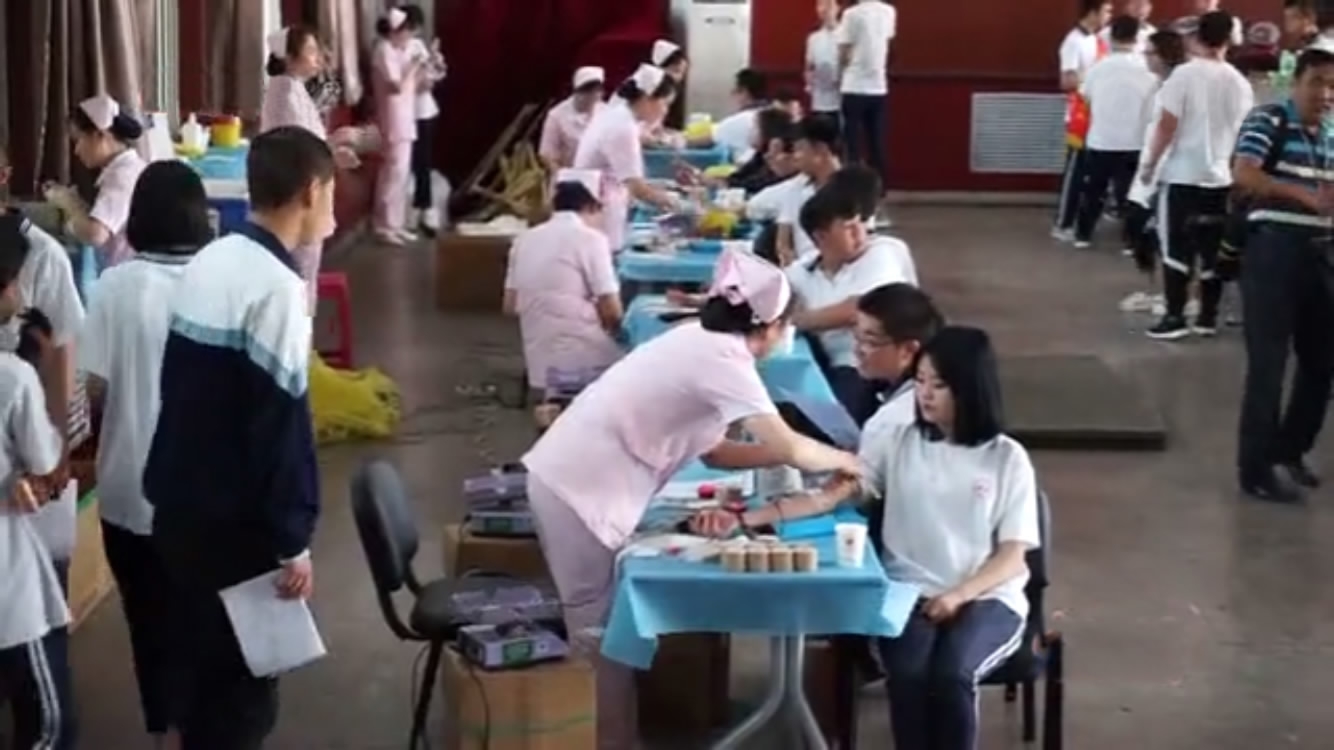 A doctor is drawing blood from a student at the college on Friday. /Screenshot via CNS