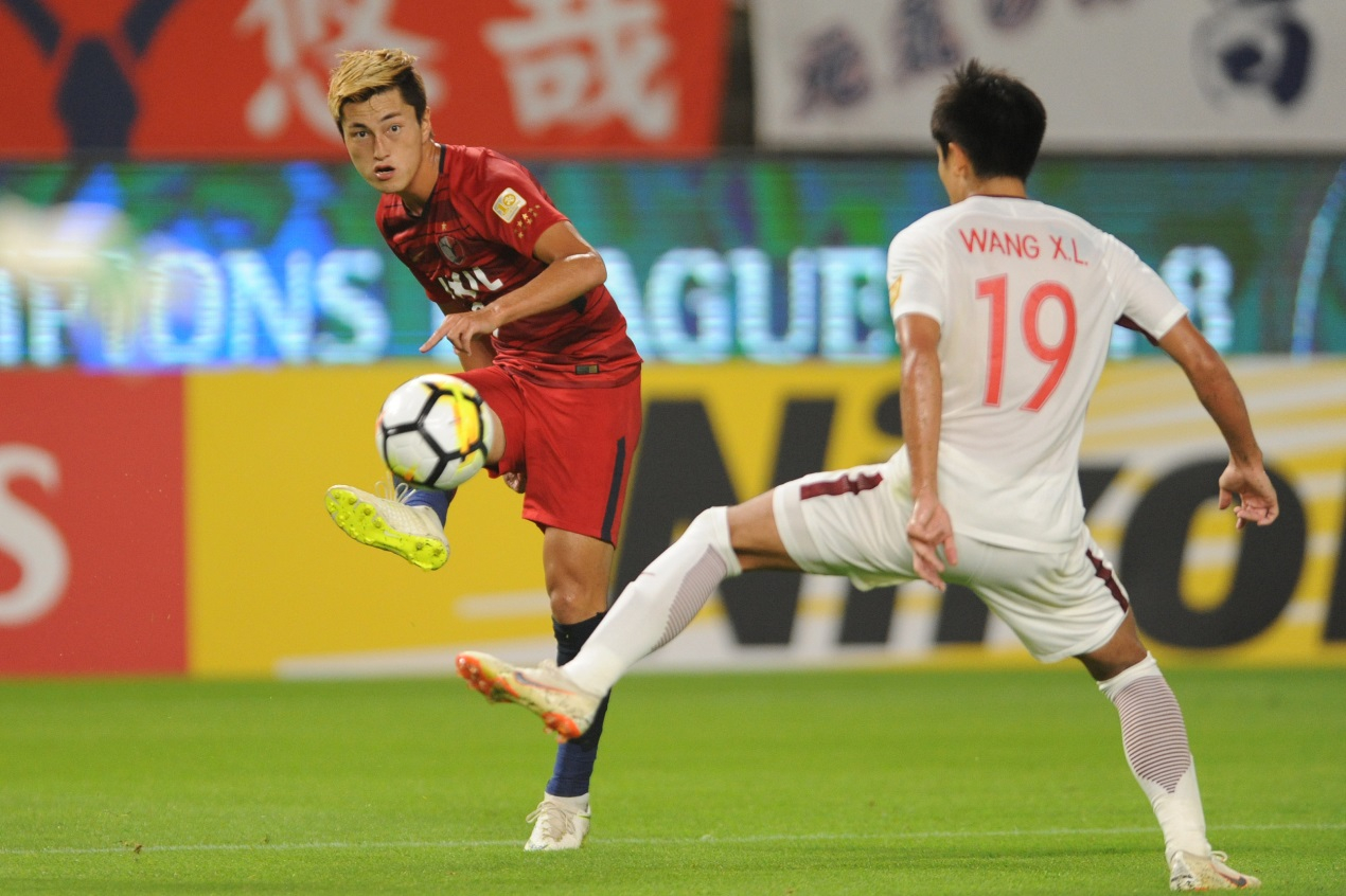 Yuma Suzuki of the Kashima Antlers (L) in action during the AFC Champions League Round of 16 first leg match against Tianjin Quanjian on August 28, 2018. /VCG Photo