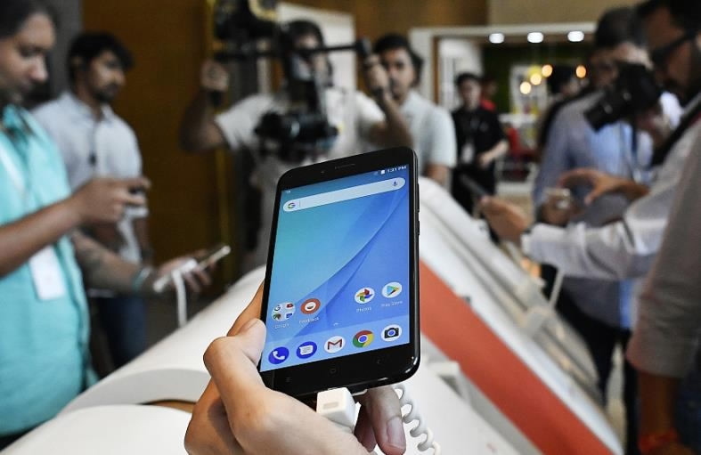 An attendee holds a Xiaomi's Mi A1 dual camera device during the smartphone's launch in New Delhi, India, September 5, 2017. /VCG Photo