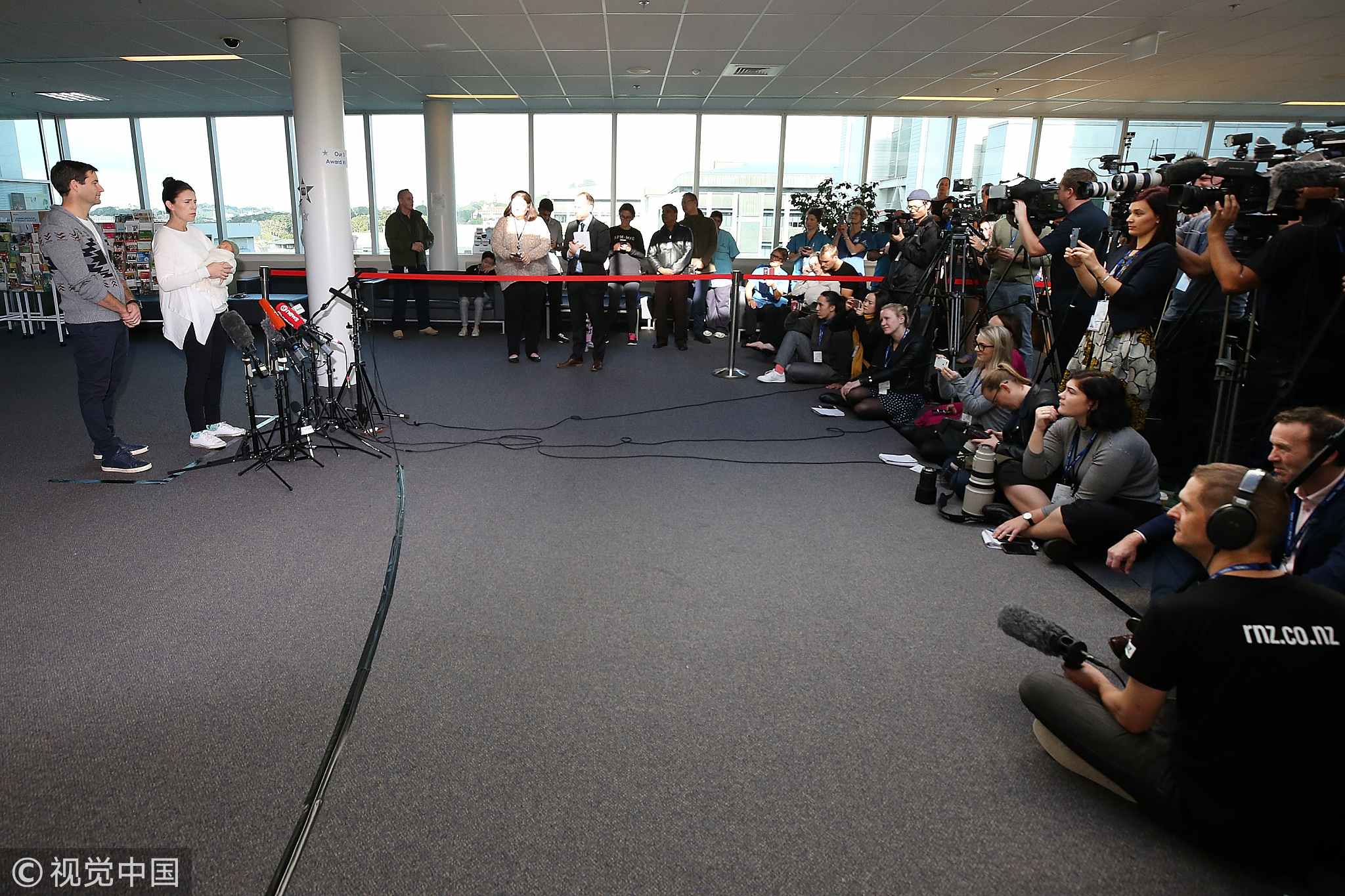 New Zealand Prime Minister Jacinda Ardern, alongside her partner and her newly-born baby girl, attends a press conference, June 24, 2018, in Auckland. /VCG Photo