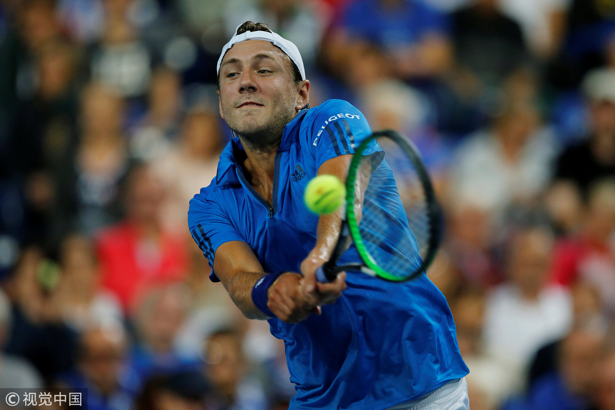 France's Lucas Pouille in action during his match against Spain's Roberto Bautista Agut /VCG Photo