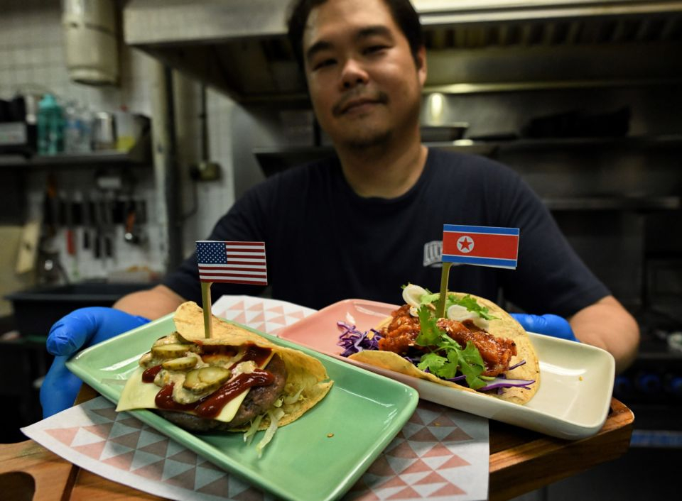 His “El Trumpo” (L) and “Rocket Man” (R) tacos at a restaurant in Singapore, June 7, 2018. /AFP Photo