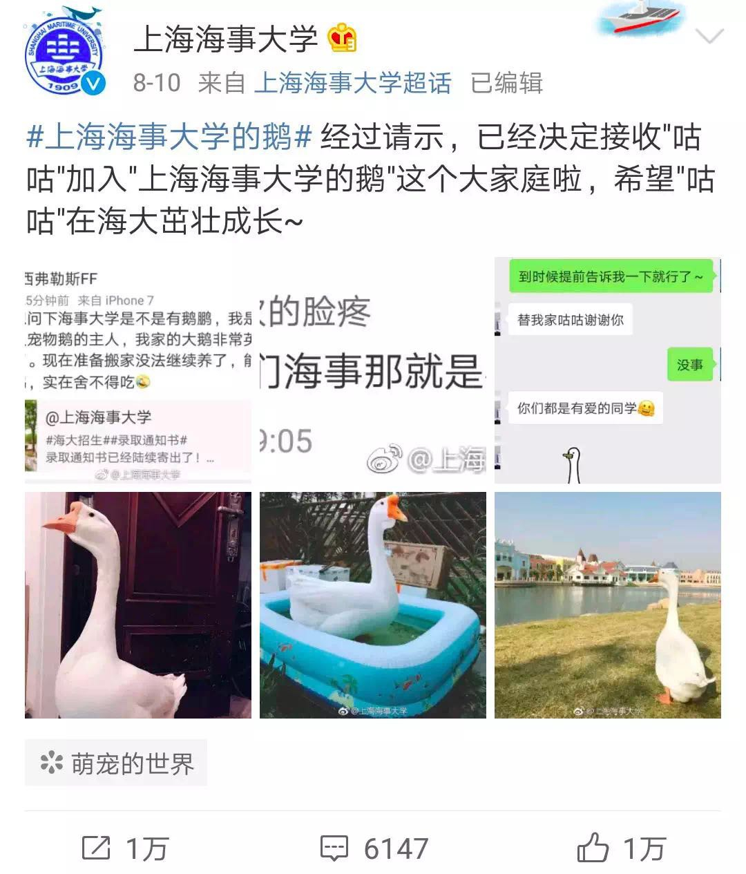 Later, the university announced on Weibo that they were willing to accept the goose and also issued an official admission letter to the special “student,” a post that now has more than 10,000 likes and 10,000 shares respectively.
