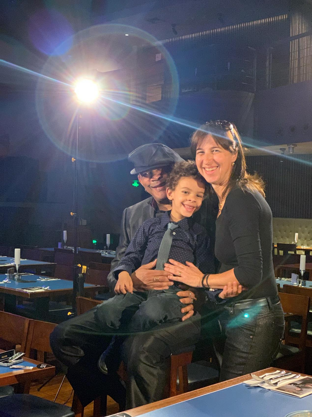 Blue is traveling with his family. His wife, Ilaria Lantieri Blue plays bass in his band and his five-year-old son James is studying hard to become a drummer.