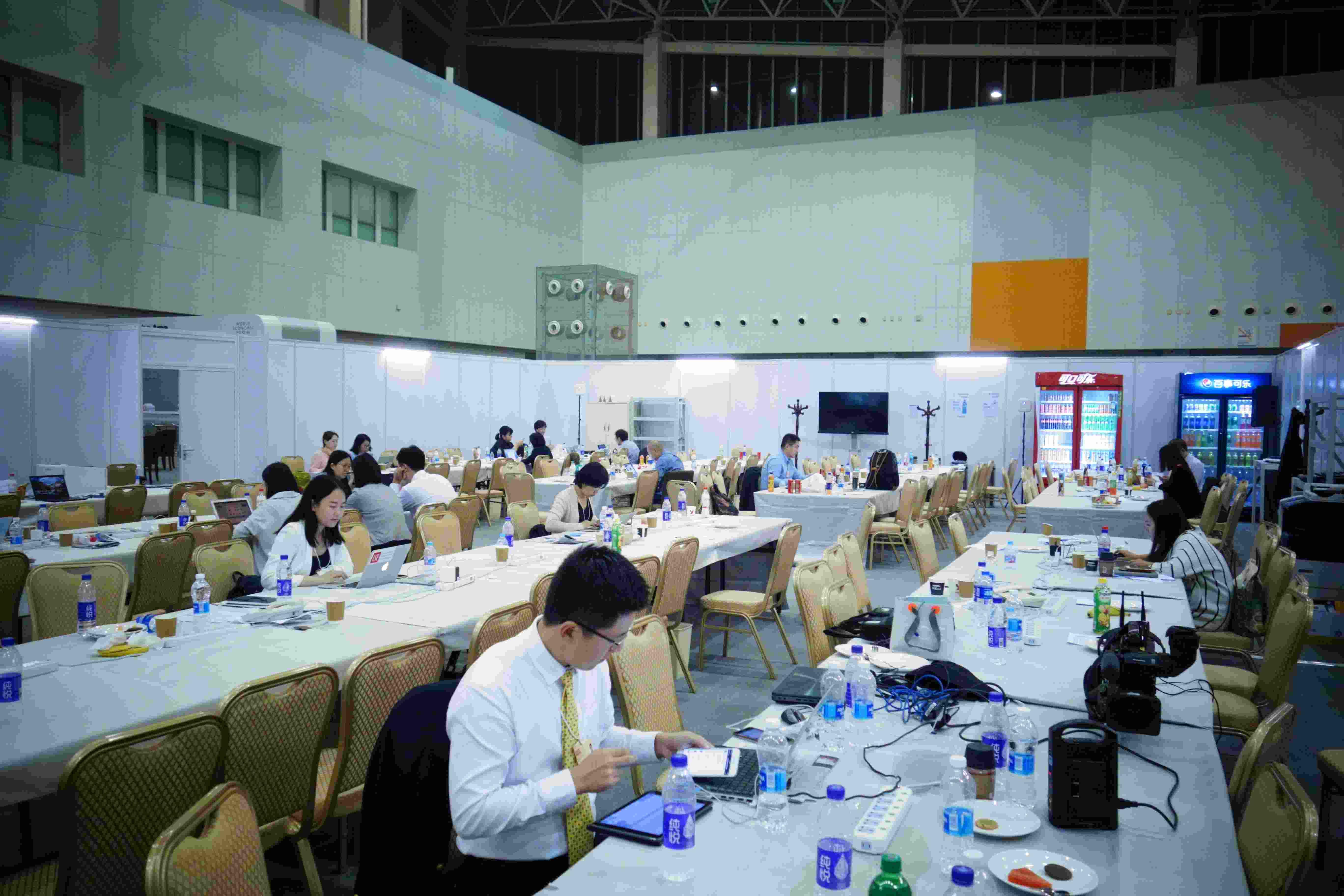 Media center of the Summer Davos 2018 in Tianjin, north China, Sept. 19, 2018. /CGTN Photo