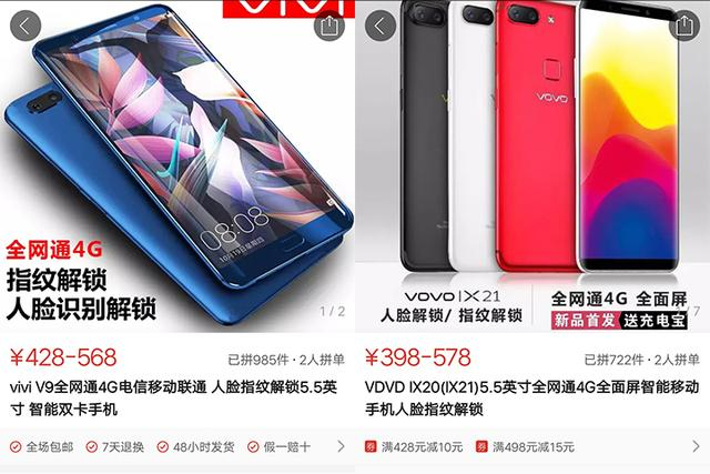 Vivi, a fake Vivo-branded phone was found on sale for about 400 yuan (about 60 US dollars) on PDD. /Screenshot via Weibo