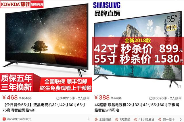 Similar discounted pricing for TV products, which appears to be a Samsung knockoff can be found. /Screenshot via Weibo