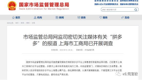 SAMR announced it will investigate PDD over counterfeit goods on its website on Wednesday. /Screenshot via Wechat