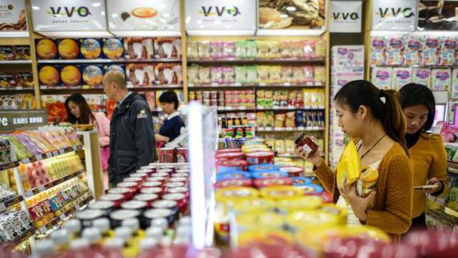 Customers buy food at the CTFHOKO shopping mall in Shenzhen. /Xinhua Photo