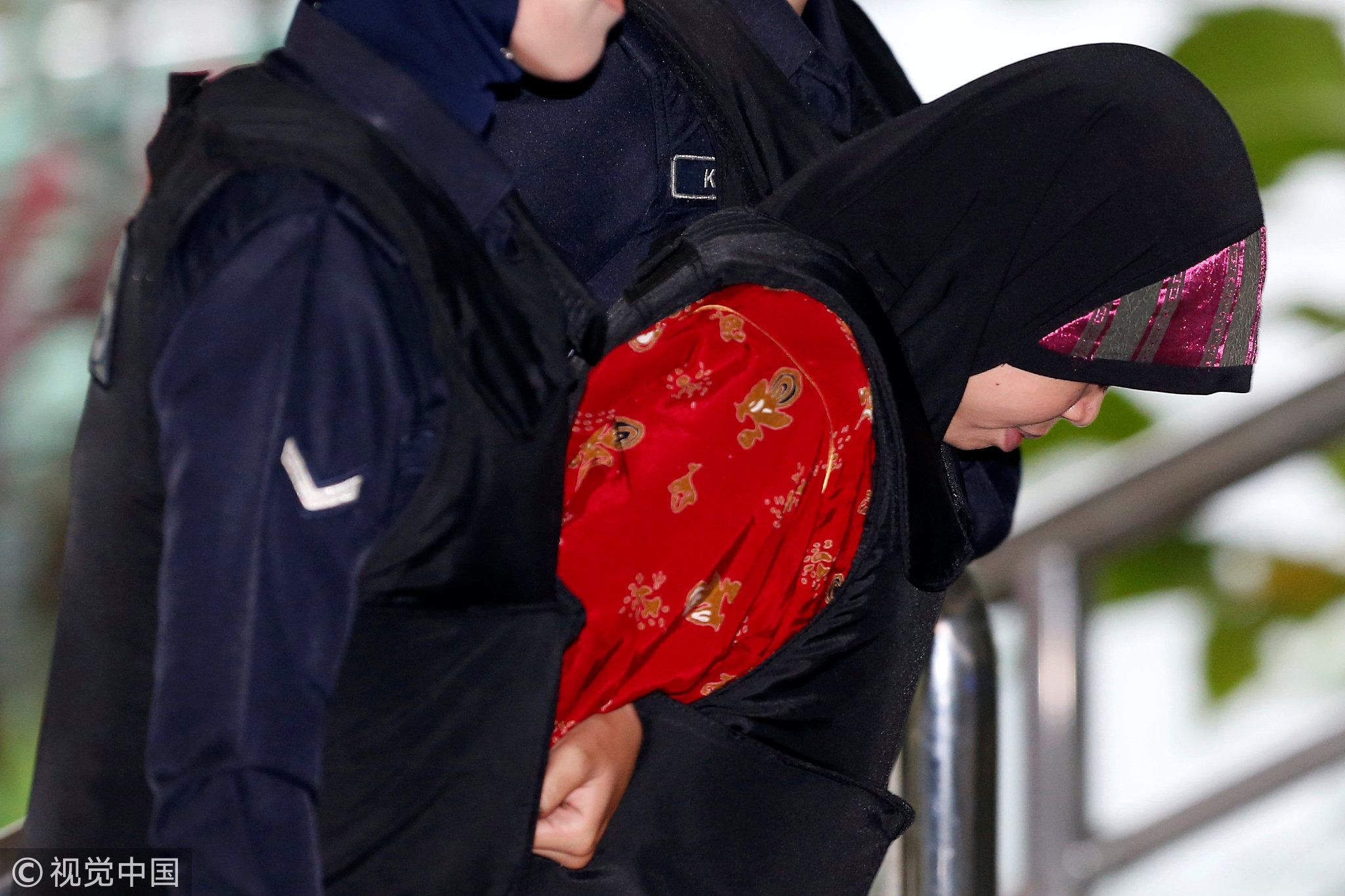 Vietnamese national Doan Thi Huong (L) is escorted by Malaysian police for her trial at the Shah Alam High Court, outside Kuala Lumpur, August 16, 2018. /VCG Photo