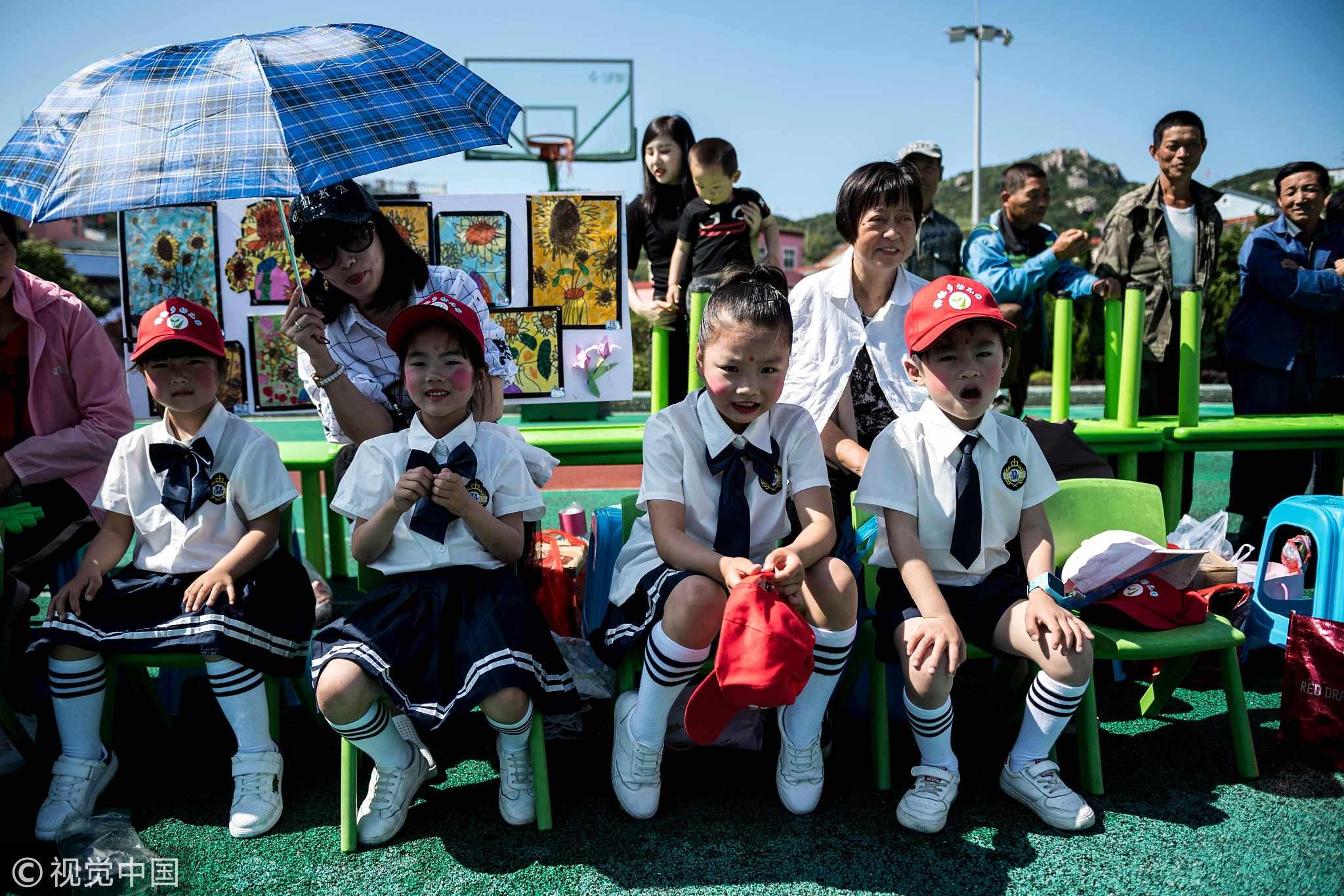 June 1, 2018: Parents and their children attend an event at a village square on International Children's Day on Gouqi Island in Zhejiang province, around 100km south of Shanghai. / VCG Photo