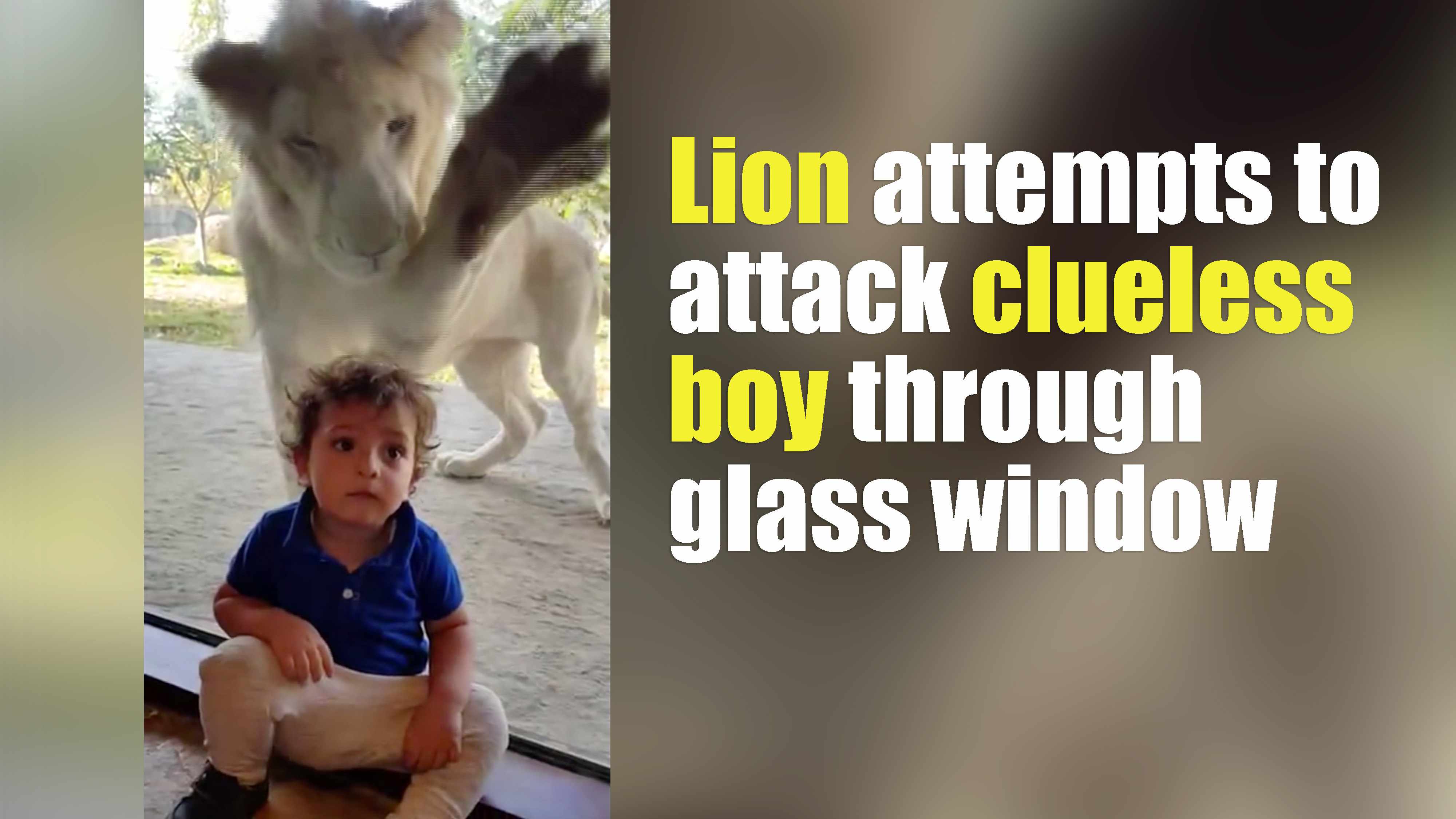 A lion attempted to attack a clueless boy through the glass at the Dubai Safari Park in the United Arab Emirates. In the video, the lion in the enclosure came up behind the boy and repeatedly tries to attack him through the glass. The filmer said his son, Adam, was too tired to walk and decided to rest and the lion headed straight for him.
