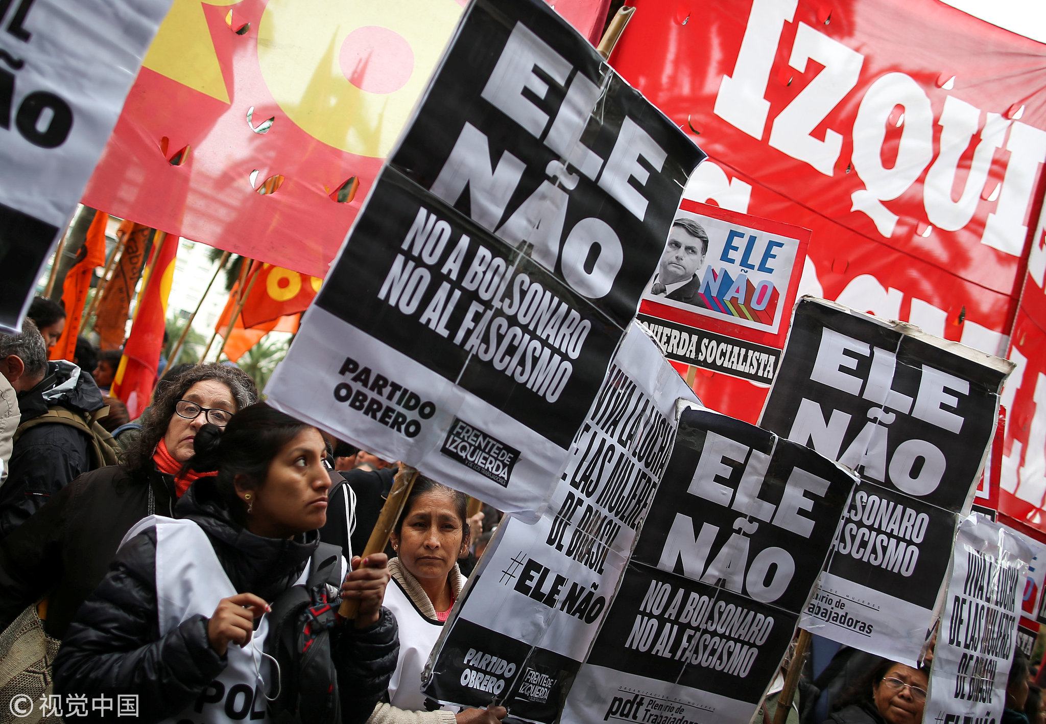 People protest against presidential candidate Jair Bolsonaro in Rio de Janeiro, Brazil, October 20, 2018. /VCG Photo