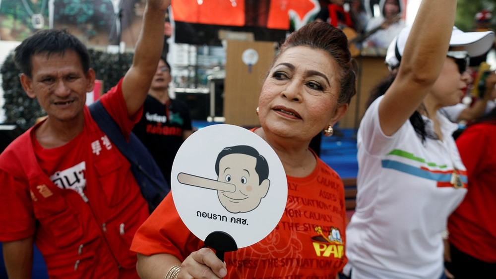 People protest against Thailand's Prime Minister Prayuth Chan-ocha in Bangkok, May 5, 2018. /VCG Photo