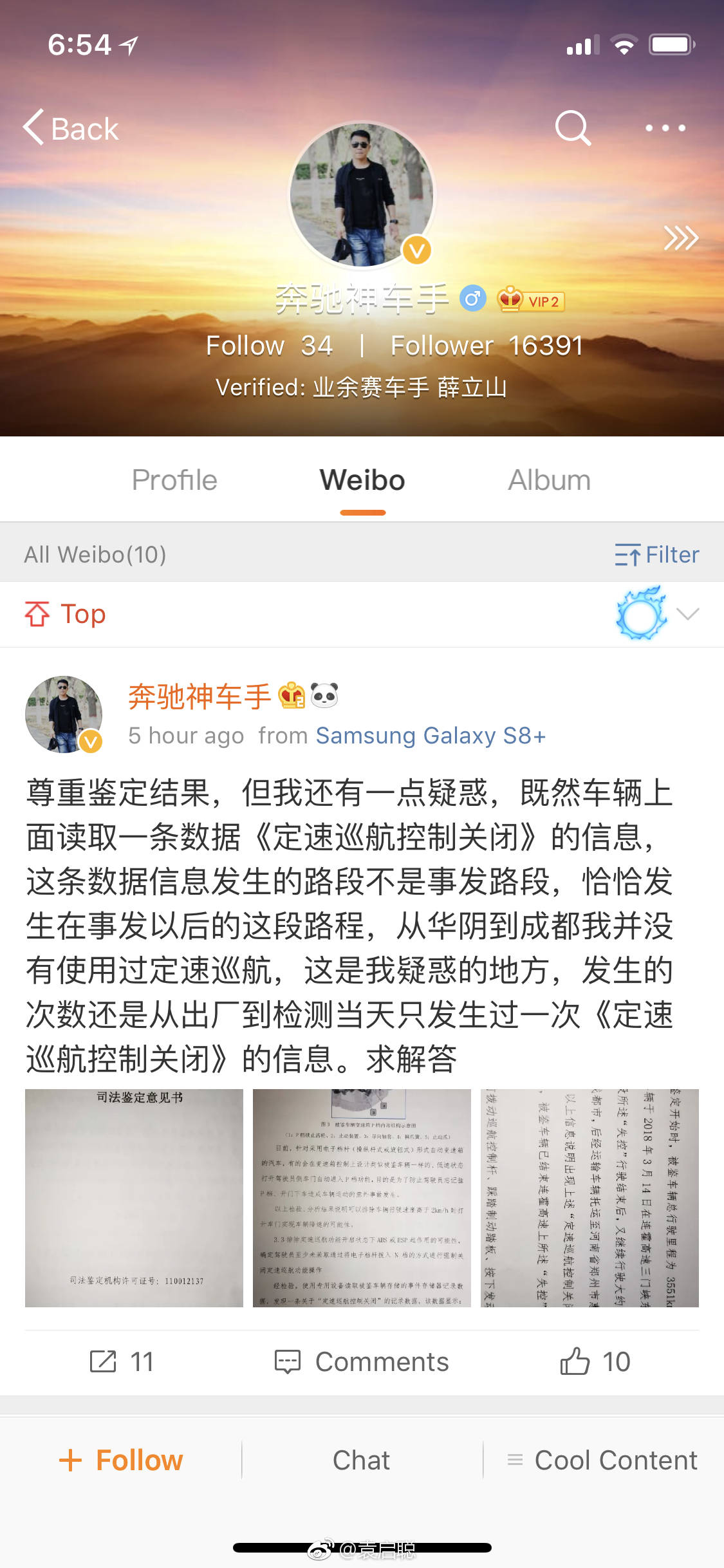 Mr. Xue added that he respected the result, but because of the technicality of the report would seek advice from friends who knew more about the topic before he decided whether to run a second test. He said he had continued using the car after the test and would continue to use cruise control.