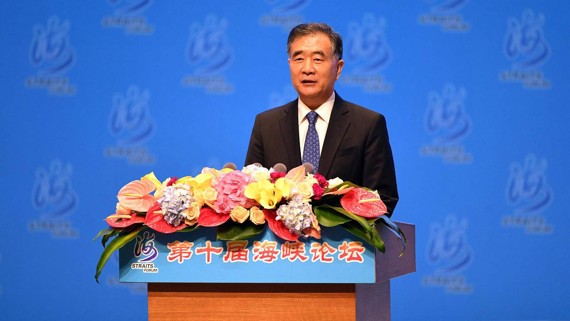 Wang Yang, a member of the Standing Committee of the Political Bureau of the Communist Party of China Central Committee and chairman of the National Committee of the Chinese People's Political Consultative Conference, made the remarks at the opening ceremony of the 10th Straits Forum in Xiamen city in eastern China's Fujian Province.