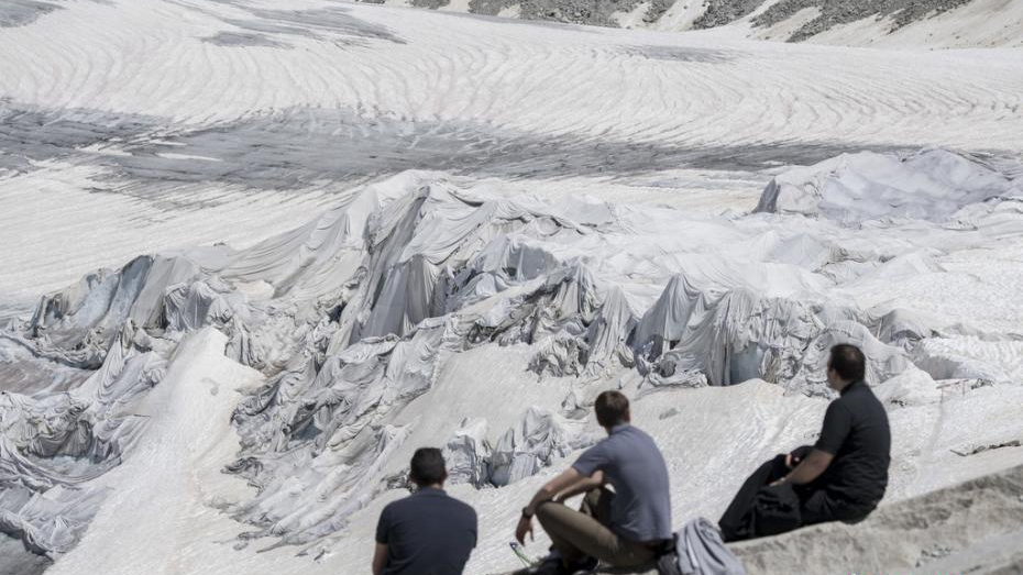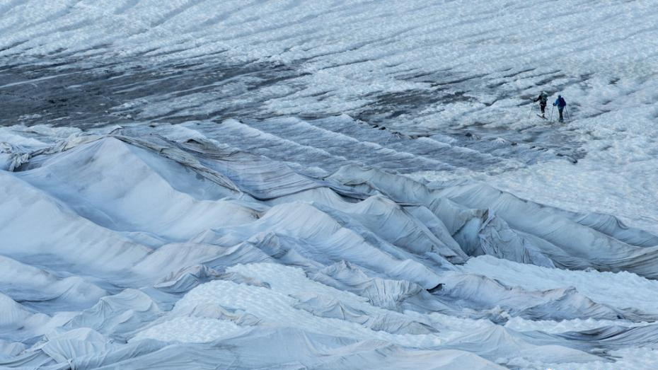 Rhone Glacier, the oldest glacier in the Swiss Alps, the highest and most extensive mountain range system in Europe, was covered with an enormous white blanket to keep it cool and prevent it from melting in the summer. /Chinanews Photo