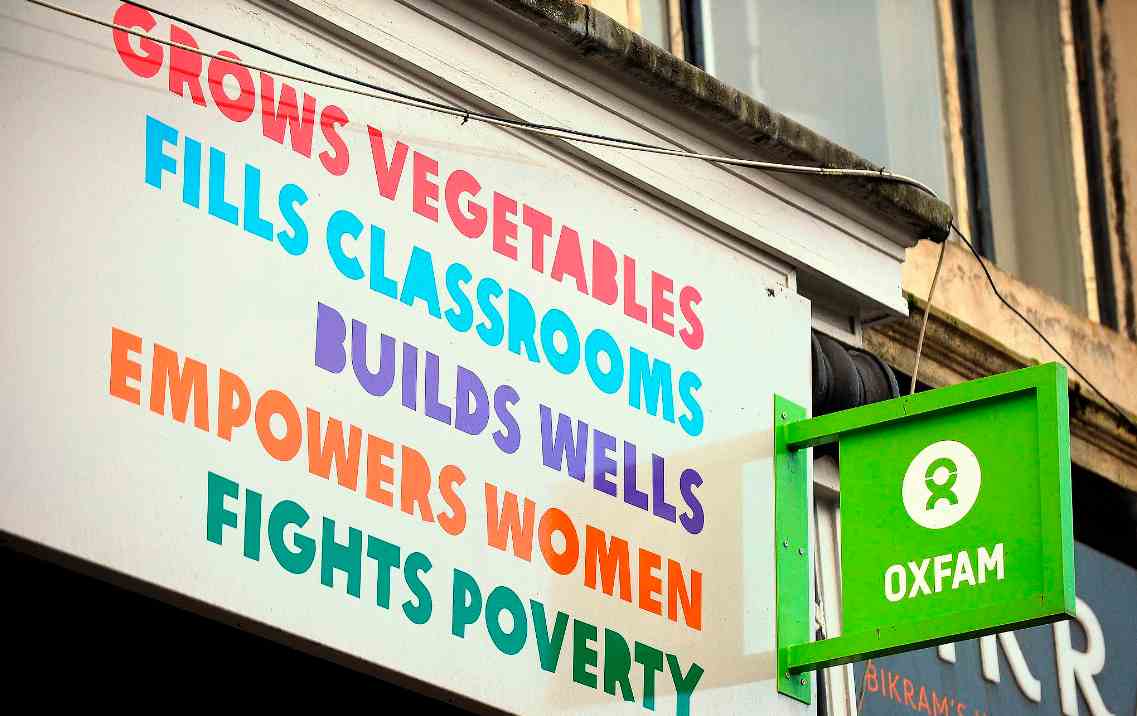 The logo on the front of an Oxfam bookshop is photographed in Glasgow February 10, 2018. The British Government announced late on February 9 it was reviewing all work with Oxfam amid revelations the charity's staff hired prostitutes in Haiti during a 2011 relief effort on the earthquake-hit island. /VCG Photo