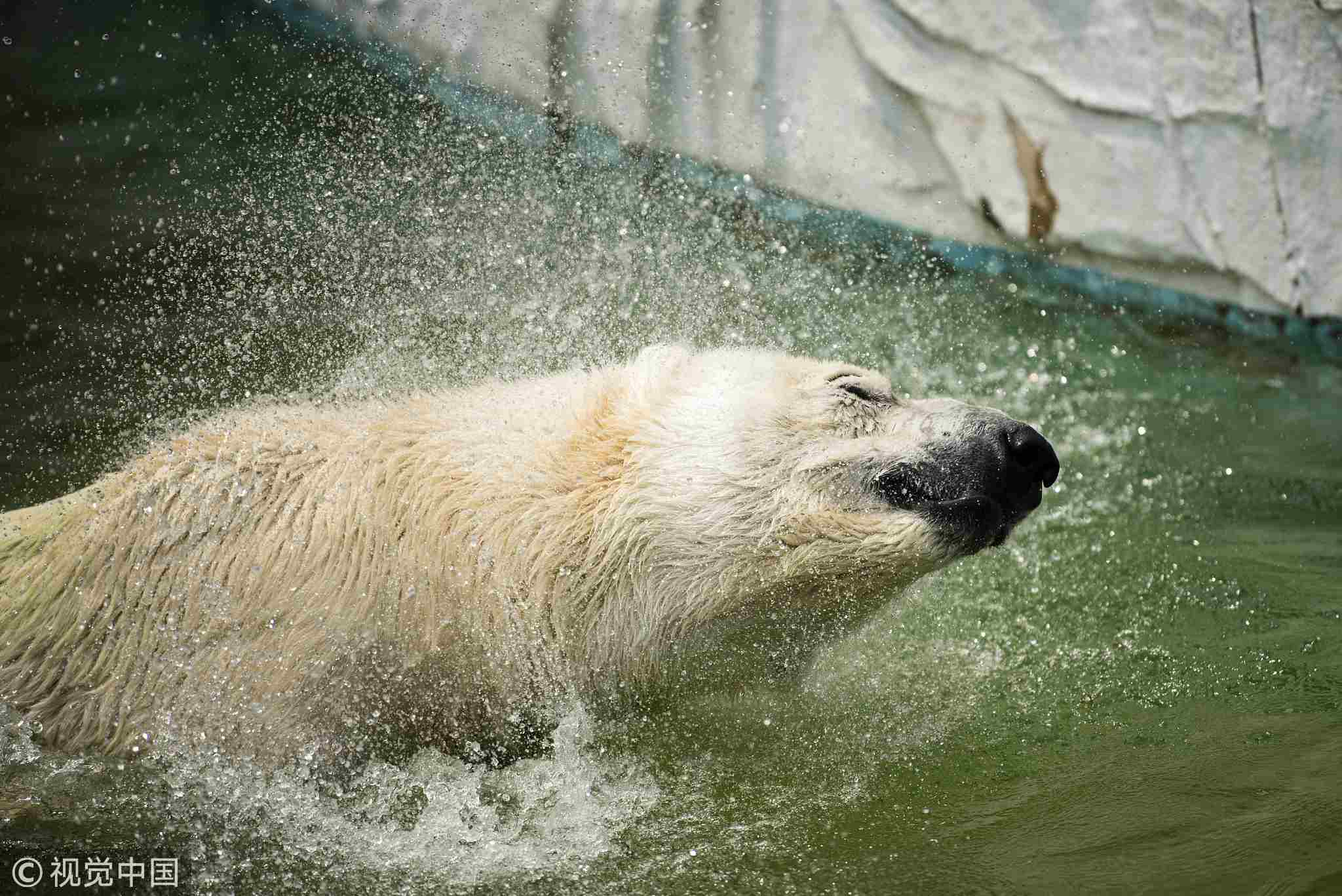 A polar bear cools off in water at Higashiyama Zoo and Botanical Garden in Nagoya, Japan. /VCG Photo