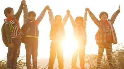 Primary school students wearing red scarves in a rural area of China. / VCG Photo