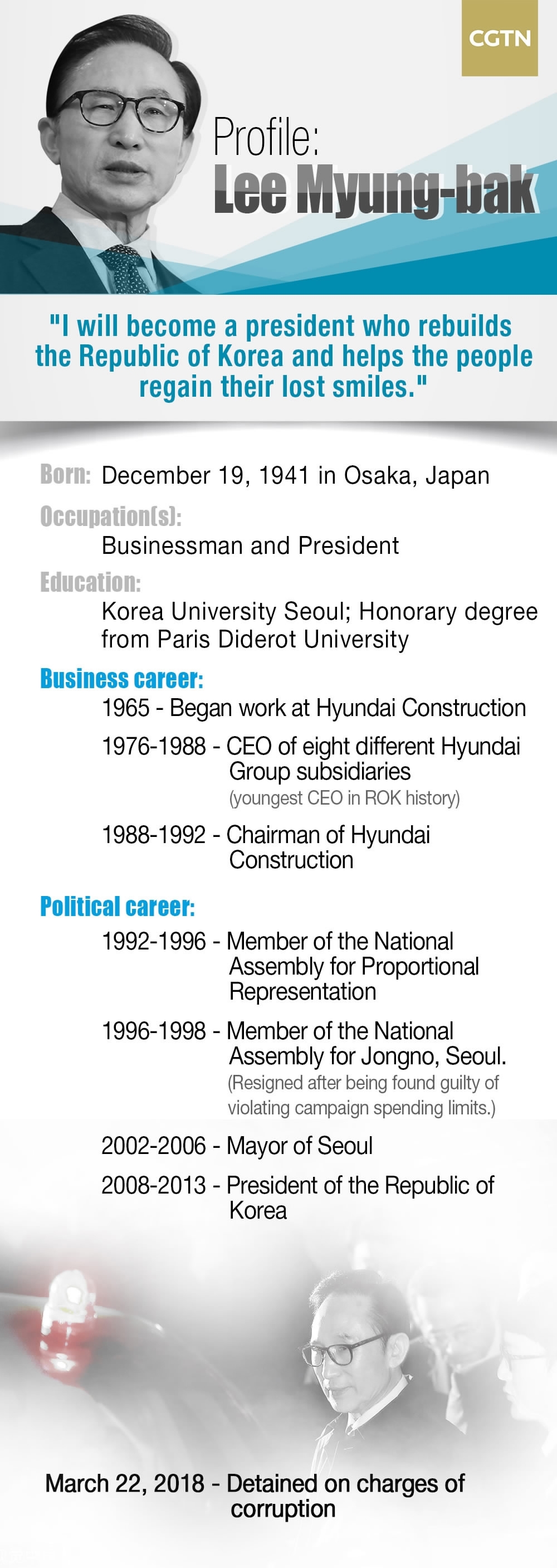 Lee, who had served the five-year presidency that began in early 2008, was taken into custody on March 22 for multiple corruption charges.