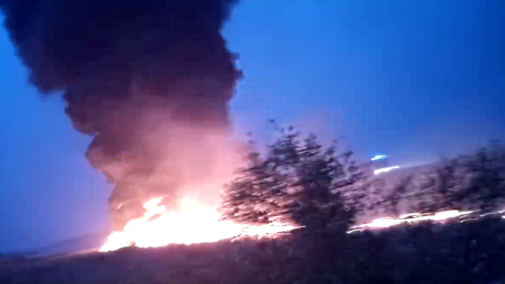 In the process, the plane's landing gear and one of its wings were destroyed, and the left engine caught fire.