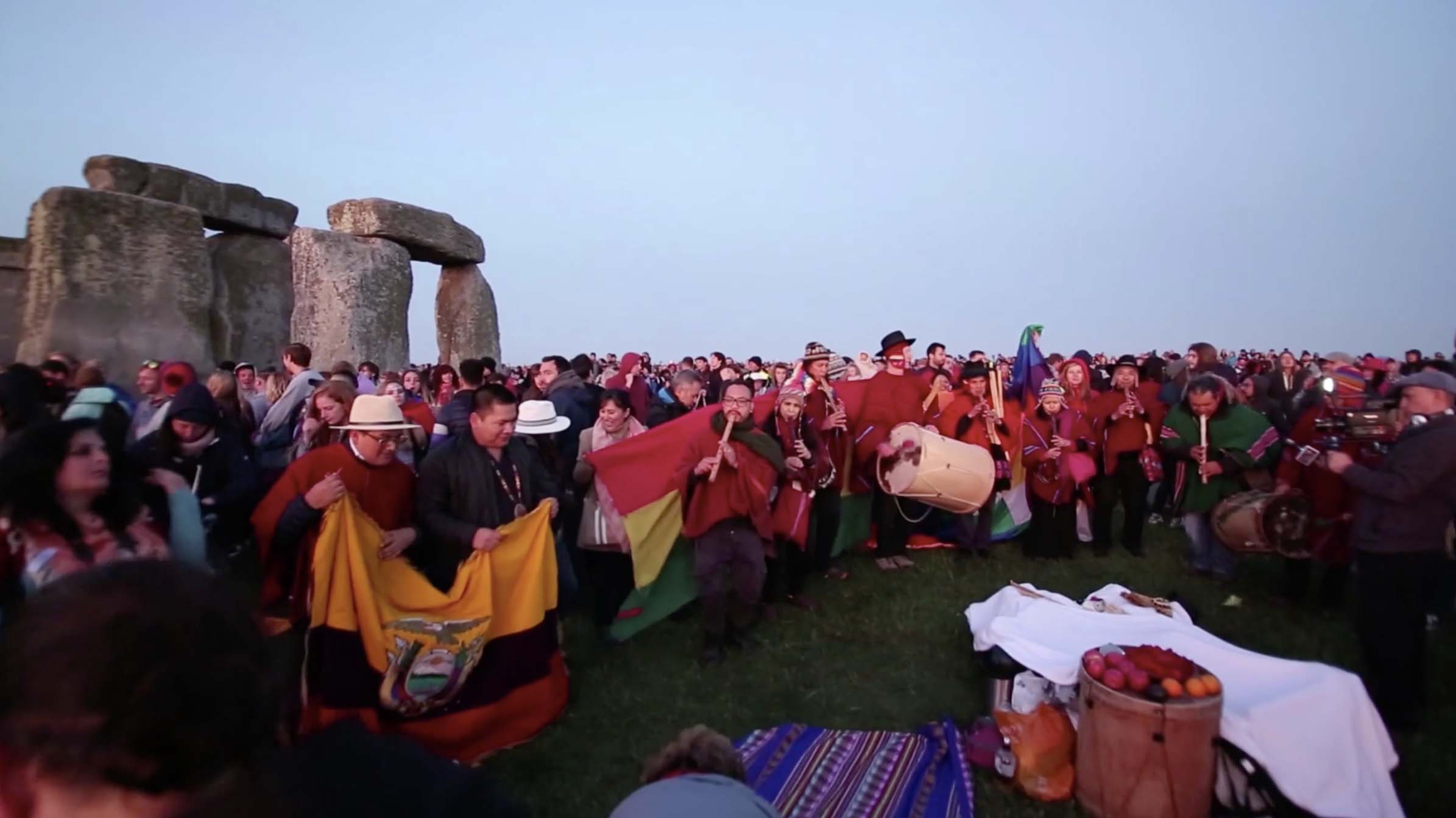 How do revelers celebrate the longest day of the year at Britain's ancient monument Stonehenge?
