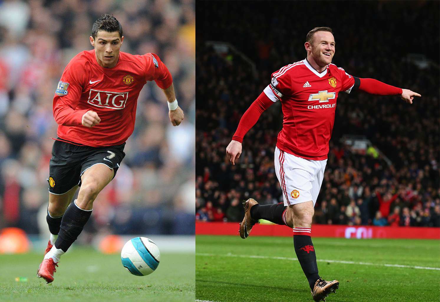 Wayne Rooney (R) and Cristiano Ronaldo (L) when they are playing for Premier League's Manchester United. /VCG Photo