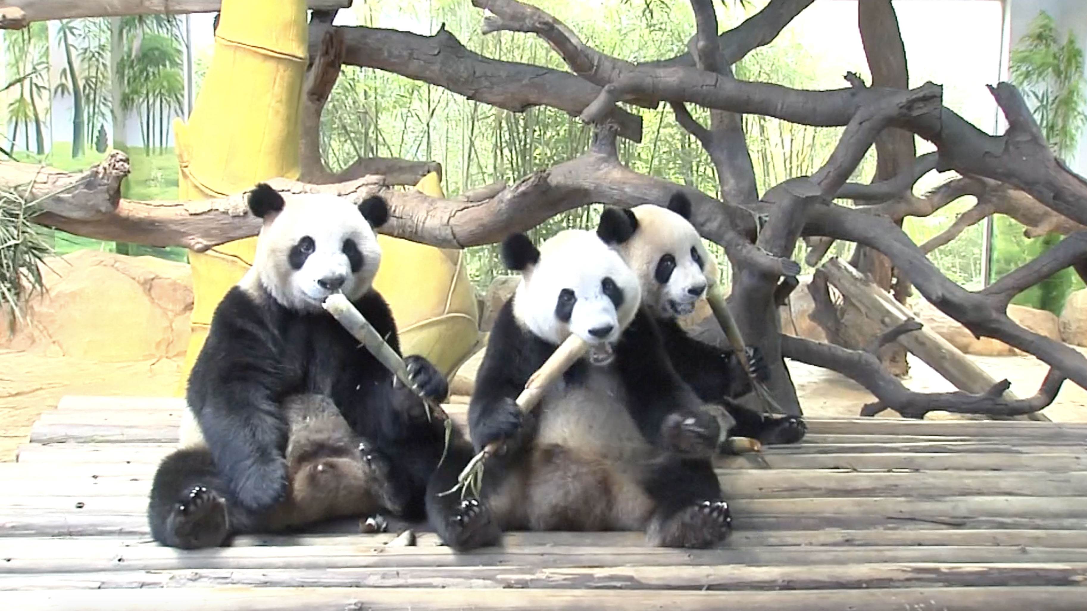 The world's only surviving giant panda triplets in south China's Guangzhou Chimelong Safari Park have attracted a continuous flow of tourists during China's National Day holiday.
