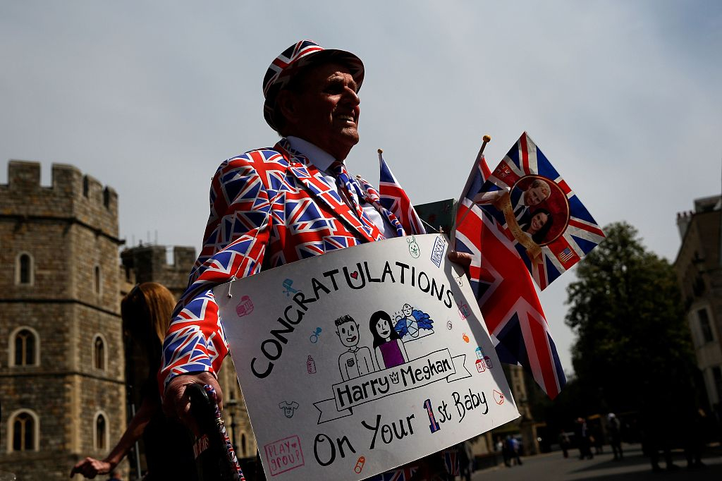 Royal watchers in Windsor after Prince Harry and Meghan had their first child, May 7, 2019. /VCG Photo