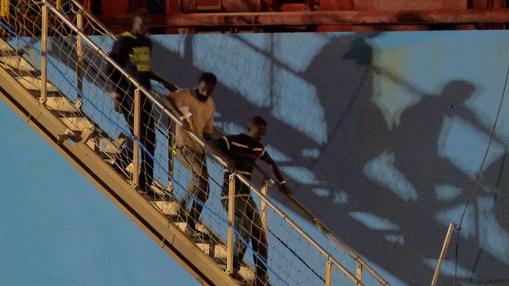 At least eight suspected people-smugglers were driven away in police cars, while identification procedures began in the port for the rest migrants.