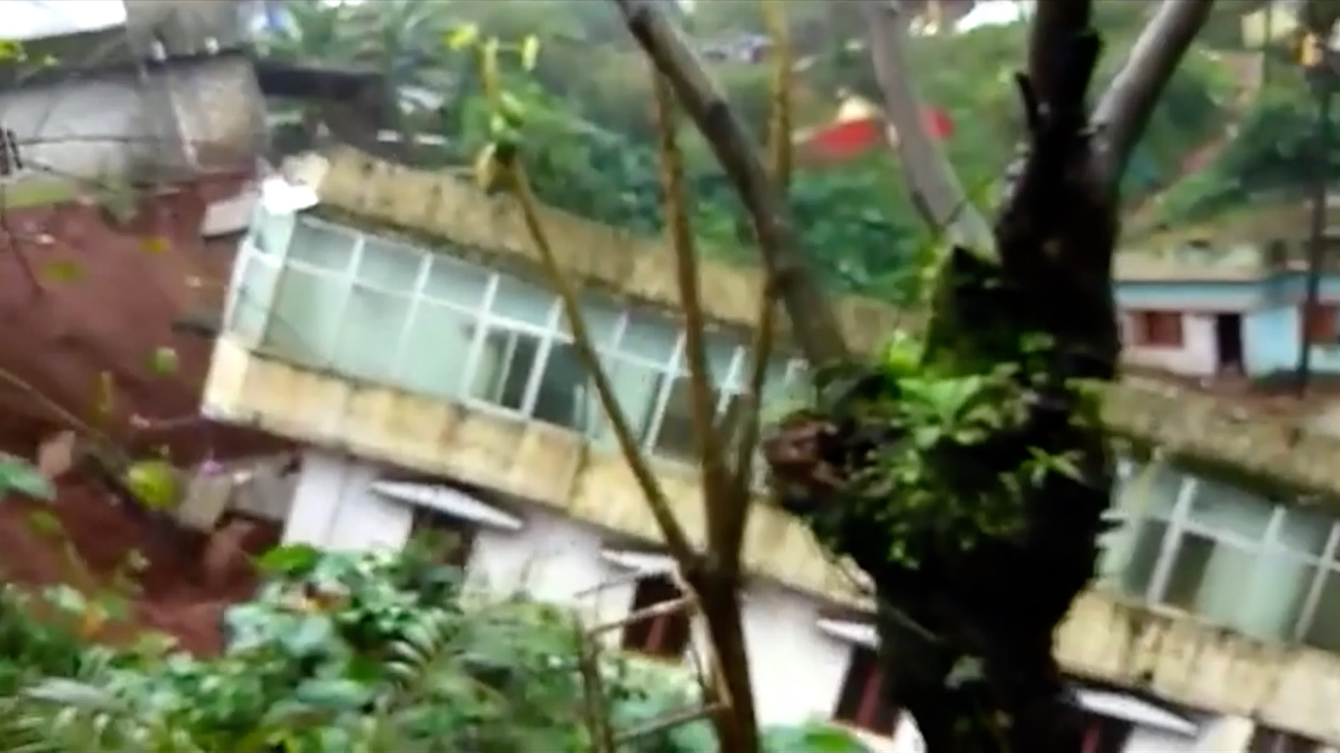 This is the terrifying moment a house slid down a hill during a landslide in India on Thursday. All 40 residents had been evacuated from the building in Mercara in Karnataka and no lives were lost. Eyewitnesses said the house, located near the well-known landmark, Muthappa Temple, had been rented out by its owner to families. Officials said more than 100 houses have collapsed in the last three days in Coorg district where Mercara is situated.