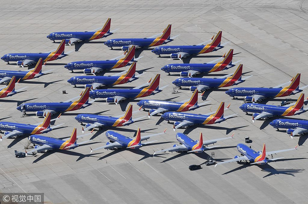 Southwest Airlines Boeing 737 MAX aircraft parked on the tarmac after being grounded, at the Southern California Logistics Airport in Victorville, California, on March 28, 2019. /VCG Photo