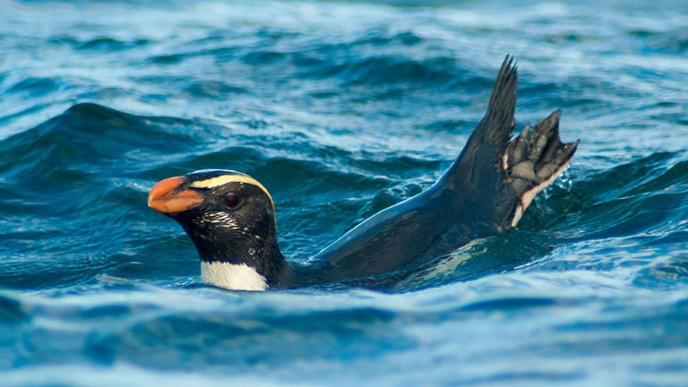 Each year in December, penguins with long blonde eyebrows swim away from the shores of New Zealand for a two-month marathon swim halfway to Antarctica and back.