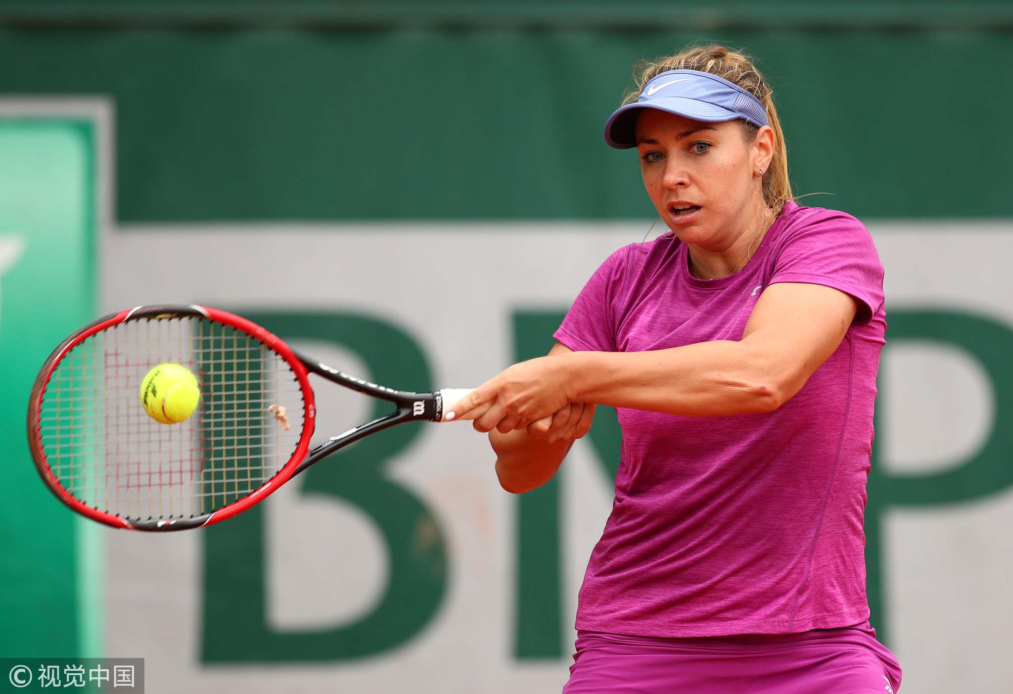 Kristina Kucova of Slovakia plays a backhand during the women's singles match against Zhang Shuai of China (not pictured) of the 2018 French Open, May 29, 2018. /VCG Photo