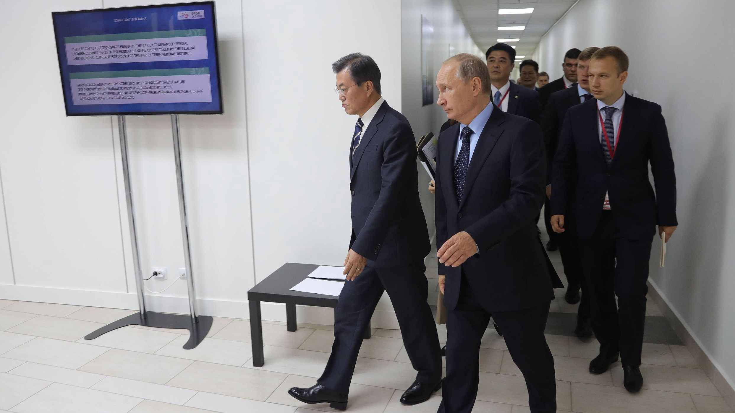 Putin and Moon first met in September when the ROK leader attended the 2017 Eastern Economic, an event at which he addressed his "Nine Bridges" of ROK-Russia cooperation program and spoke of developing trilateral projects with the DPRK in far eastern Russia.