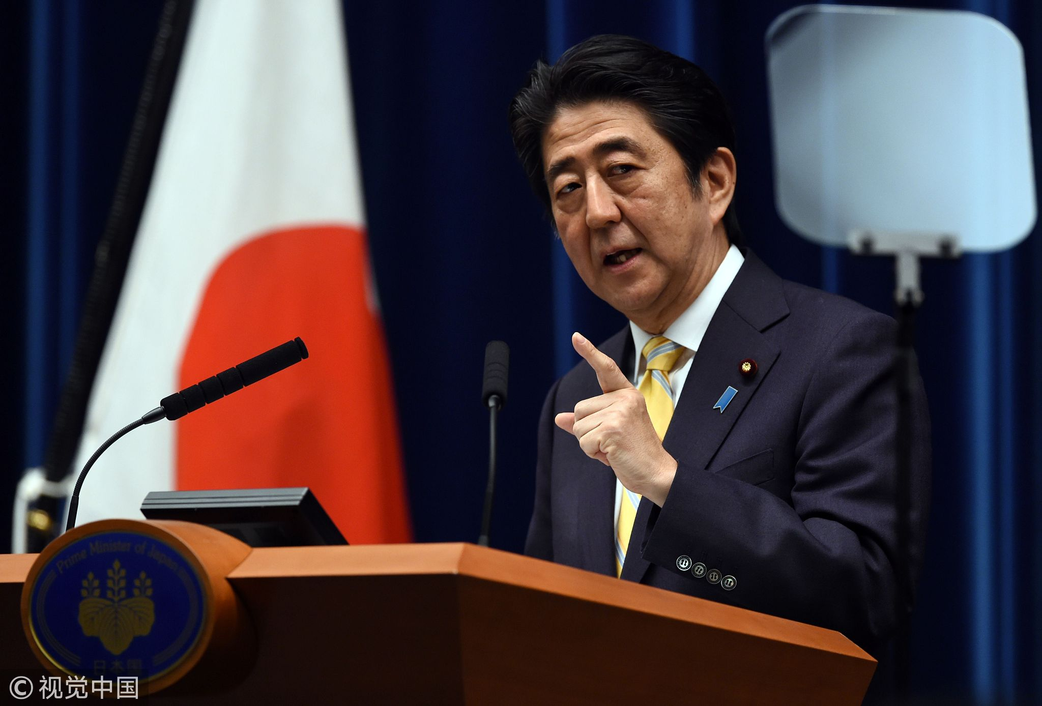 Japan's Prime Minister Shinzo Abe delivers a speech during a press conference following a cabinet meeting which approved a set of bills bolstering the role and scope of the military, in Tokyo on May 14, 2015. /VCG Photo.